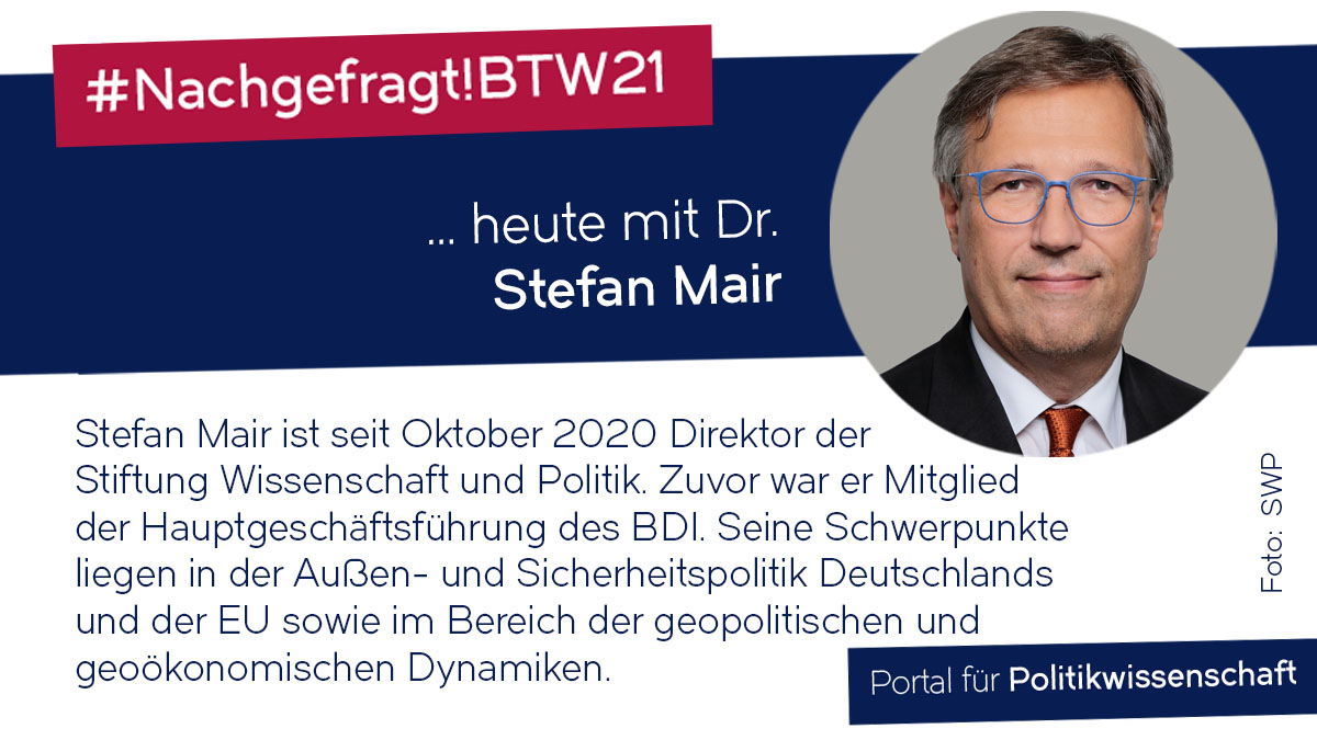 Für unsere Kurzinterview-Reihe #Nachgefragt!BTW21 haben wir 13 Politik-, Wirtschafts- und Rechtswissenschaftler*innen um kurze Statements zu den Themen der Bundestagswahl gebeten: Welche Themen werden die Wahl prägen? Welche werden zu kurz kommen? Zwischen dem 5. und dem 21. Juli 2021 veröffentlichen wir an jedem Arbeitstag ein neues Interview. Nach der Bundestagswahl geht es in die zweite Runde: Wir wollen noch einmal die Einschätzung unserer Interviewpartner*innen hören: Ist der Wahlkampf so verlaufen, wie erwartet? Vor welchen Aufgaben sehen sie die Politikwissenschaft in der nächsten Wahlperiode?