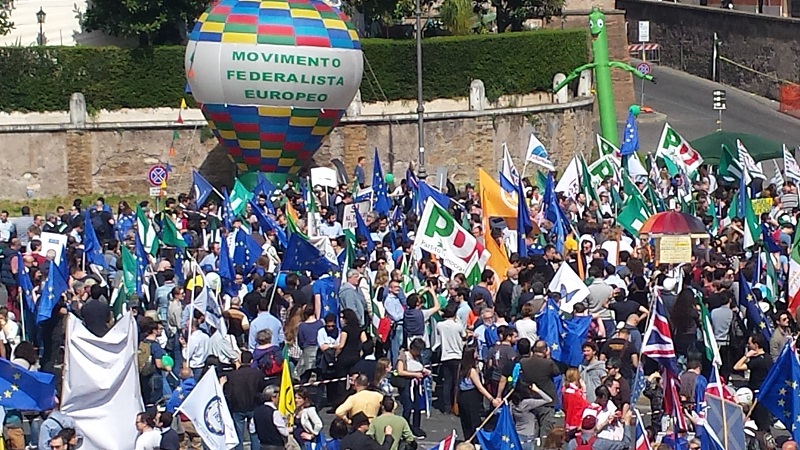 Manifestation der europäischen föderalistischen Bewegung für den europäischen Integrationsprozess in Rom am 25. März 2017, anlässlich des 60. Jahrestages der Unterzeichnung der Römischen Verträge. Foto: Sabine Steppat