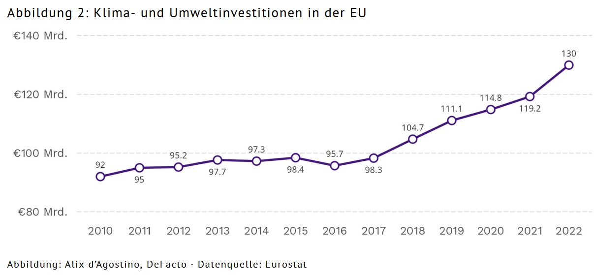 Meine Ergebnisse zeigen, dass trotz des öffentlichen Diskurses grüne Ziele bei weitem nicht die höchste Priorität haben. Abbildung 2 zeigt, dass die von der EU gemessenen öffentlichen Ausgaben für Klima- und Umweltinitiativen beeindruckend erscheinen – mit einem gemeldeten Anstieg von über vierzig Prozent.